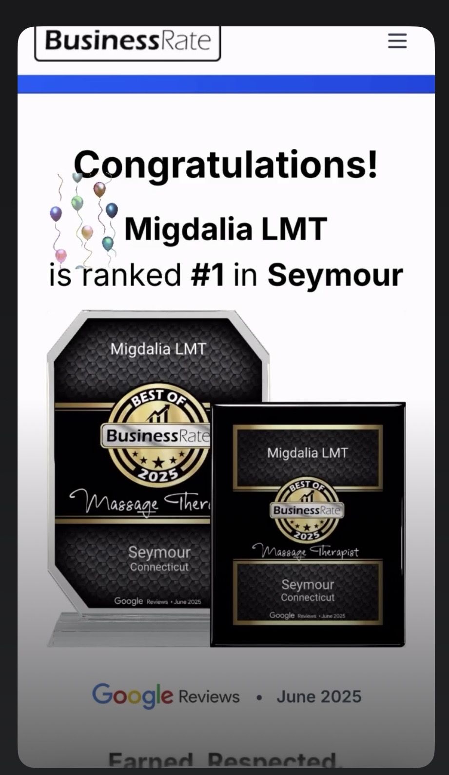 I’m Migdalia, a licensed massage therapist with countless 5-star reviews from clients who leave feeling renewed, restored, and completely cared for.